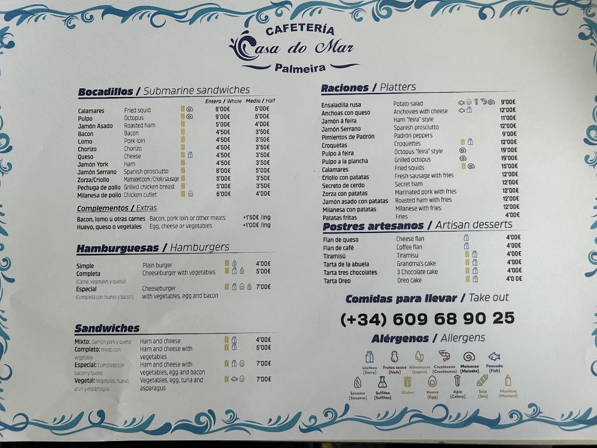 Welcome to Cafetería Casa do Mar de Palmeira, a charming cafe nestled in the picturesque coastal village of Palmeira, A Coruña. This inviting spot is a haven for food lovers, offering a delightful menu that expertly balances quality and value.